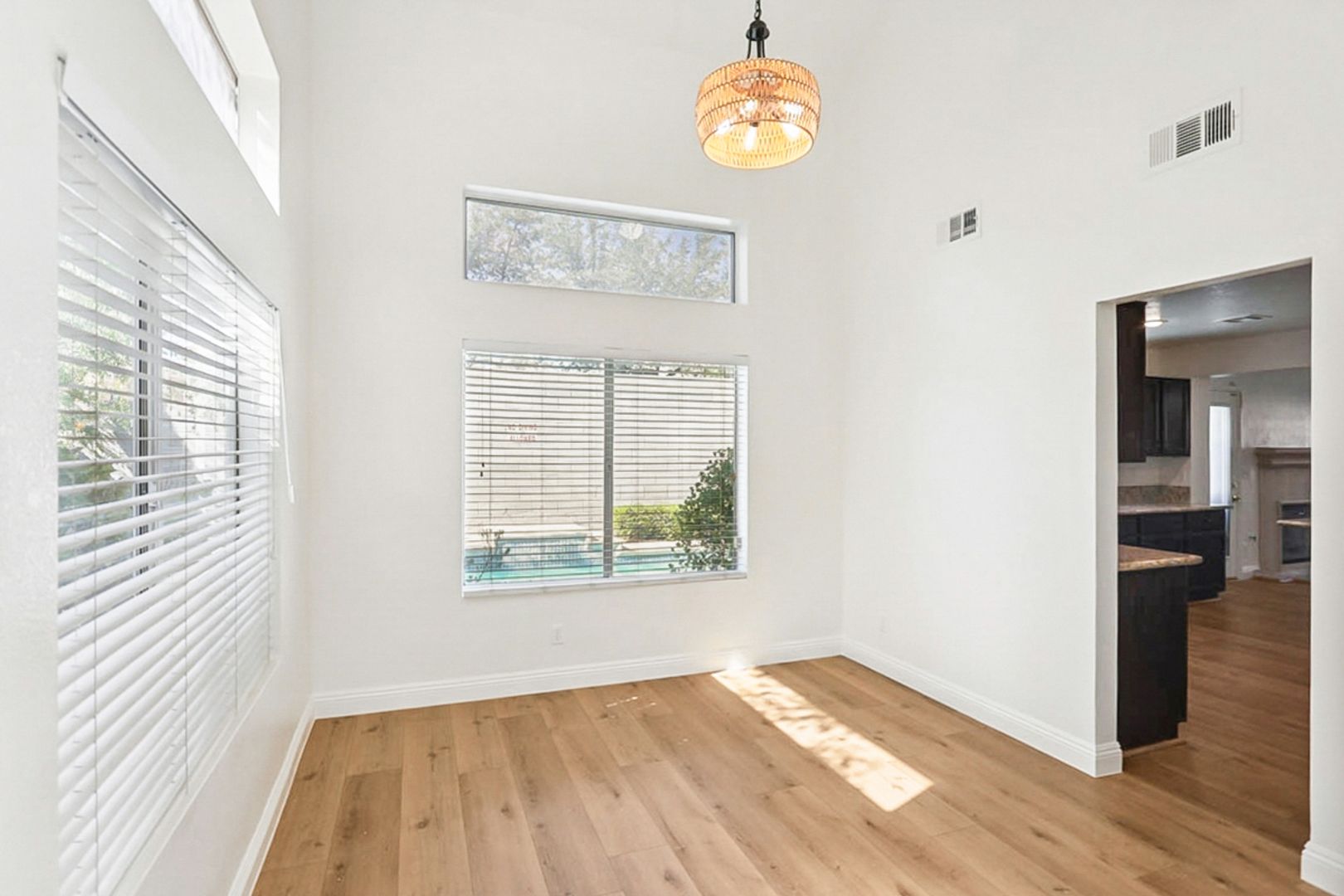 Beautiful, well kept, North Summerlin pool home; Luxury Vinyl Plank Flooring throughout; Updated light fixtures and fresh paint; Bright, open, formal living room with vaulted ceiling; Formal dining room; Spacious island kitchen with Granite counters, breakfast bar nook, refrigerator and microwave; Separate family room with ceiling fan, light and cozy gas fireplace; First floor laundry room with washer, dryer and cabinets; Guest bedrooms with ceiling fans, lights, cable outlet and closets; Primary suite with ceiling fan, light, cable outlet, walk in closet, double sink, separate shower and relaxing garden tub; Cool refreshing pool for those hot summer days; Convenient to all things Summerlin including parks, shopping, dining and more! Rent includes Pool care, landscaping, sewer, trash and Resident Benefit Package!