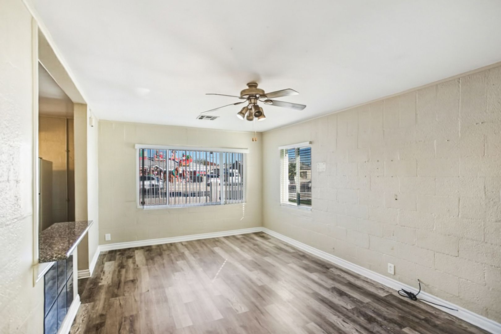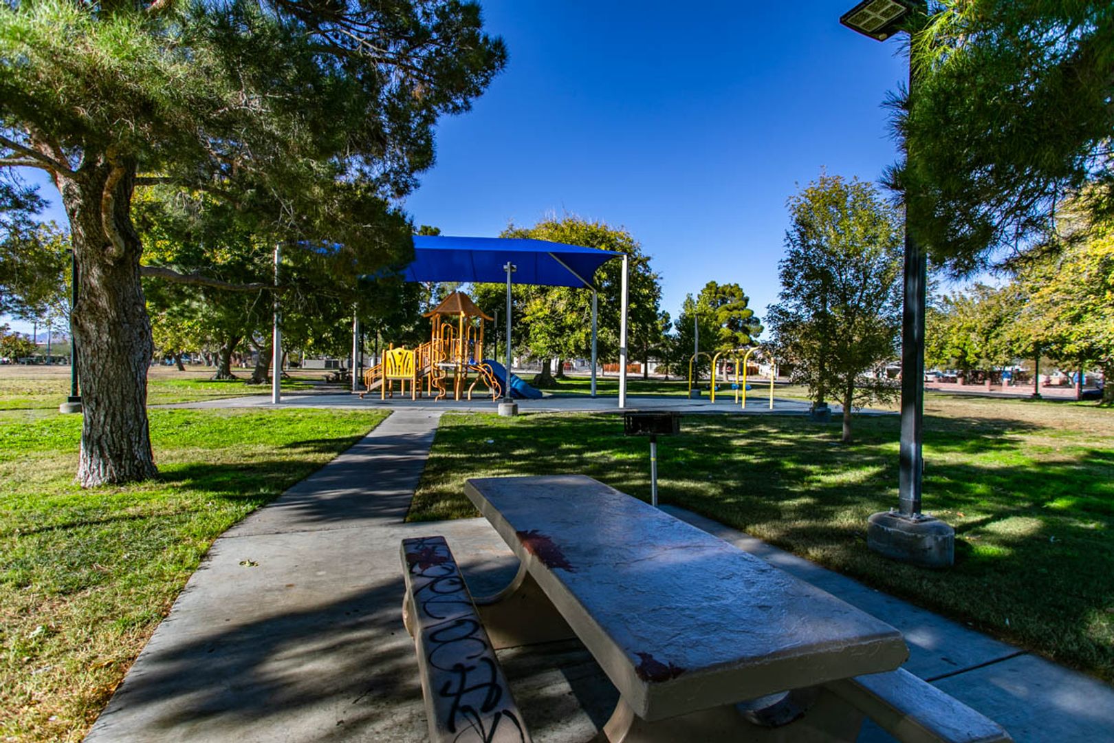 Cute 2 bed, 2 bath, single story home that is nicely updated in established neighborhood; Gated RV parking with circular driveway and covered parking; Large storage area in driveway; Luxury vinyl plank flooring throughout; Living room with ceiling fan and light; Kitchen with Granite countertops, breakfast bar refrigerator, and electric range (no dishwasher); Bedroom 1 with ceiling fan and double closet; Hall linen closet; Bedroom 2 with ceiling fan and light, double closet; Bathroom with shower; (No Washer or Dryer); Over sized covered patio off kitchen with storage area; yard with synthetic grass and storage shed; Convenient to community park and playground, shopping and dining, and the I-15! Total Rent: $1695 ($1600 rent + $45 RBP + $50 sewer and trash)