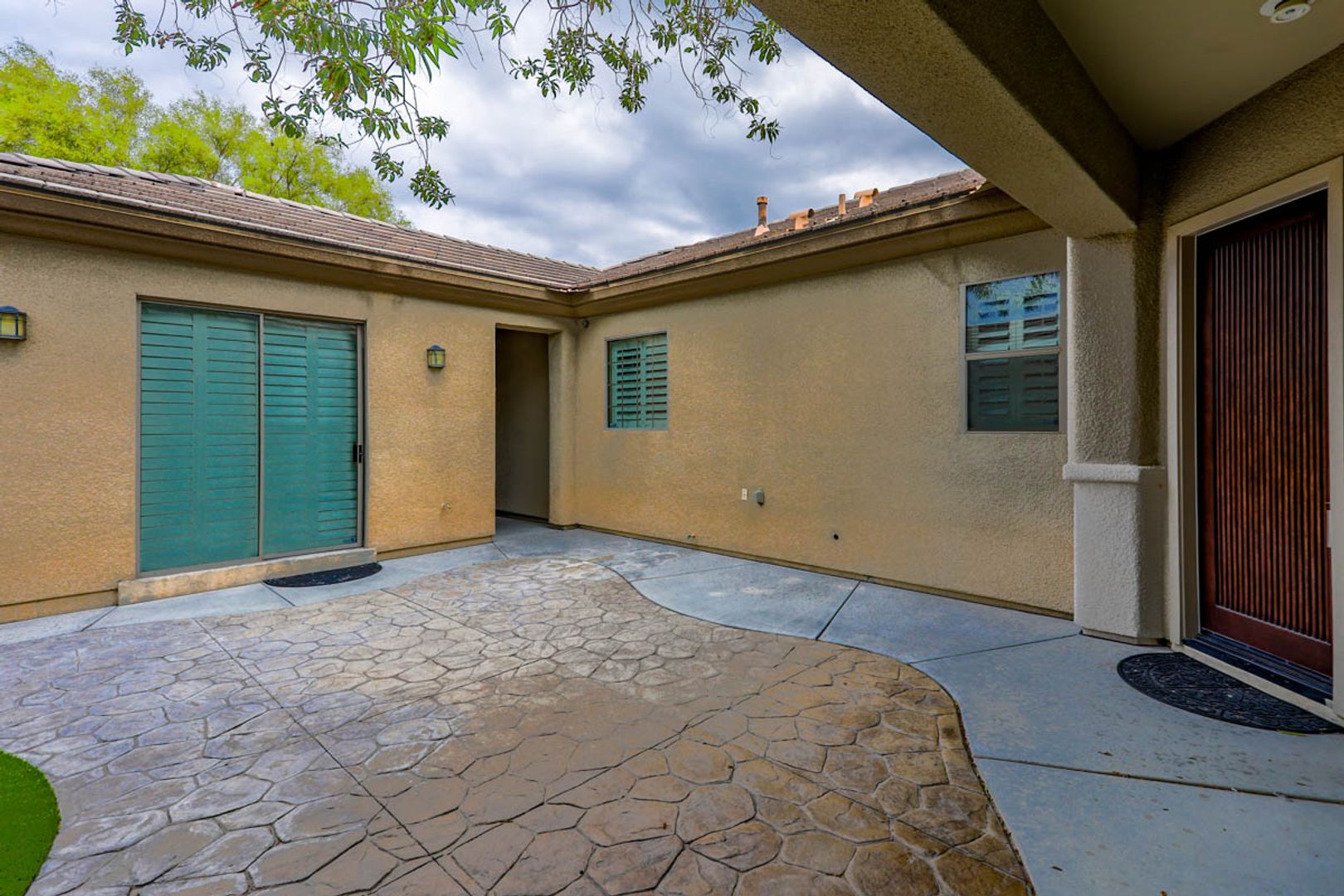 Beautiful single story home in the guard gated golf community of Anthem Country Club w/ 1653sf main house & 249sf casita for total 1902sf; Courtyard entry; Casita features bedroom with ceiling fan and light, walk in closet and full bath; Tile and carpet throughout; Bright, open living area with ceiling fan and recessed lighting; Island kitchen w/ Granite countertops, travertine mosaic backsplash, pantry, stainless steel appliances, refrigerator µowave; Primary suite w/ ceiling fan and recessed lights, deep jetted tub, sep. shower, makeup table & walk in closet; Guest bedroom with ceiling fan and light; Laundry room with washer, dryer and cabinets; Plantation shutters throughout; Oversized covered patio w/ synthetic grass, desert landscaping, and wrought iron fence with view of walking trails; Landscaping included; Community features golf, club house, pool, fitness center, park and more! (Included In Rent: $3015.00 - $2950 rent + $45 RBP + $20 trash)