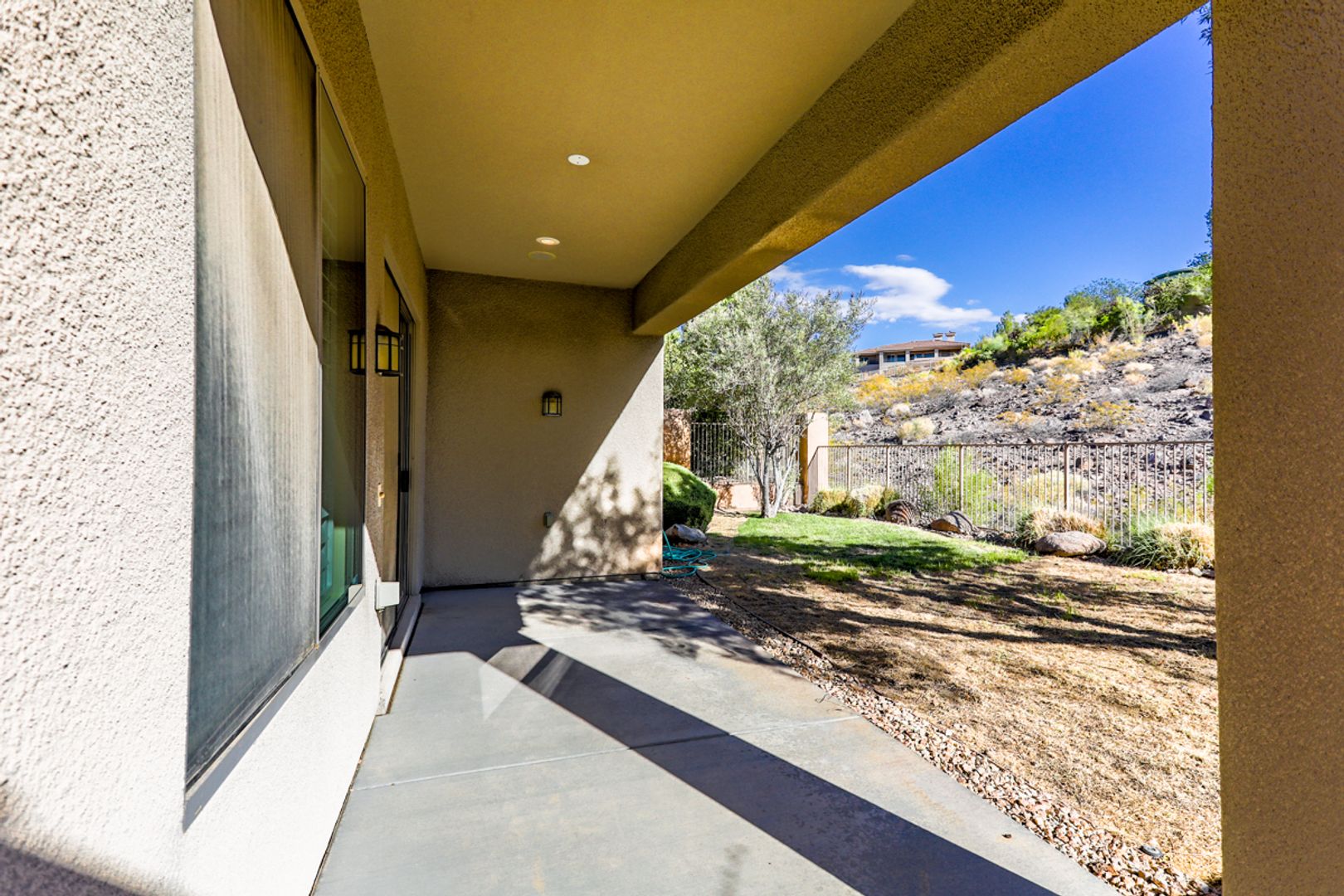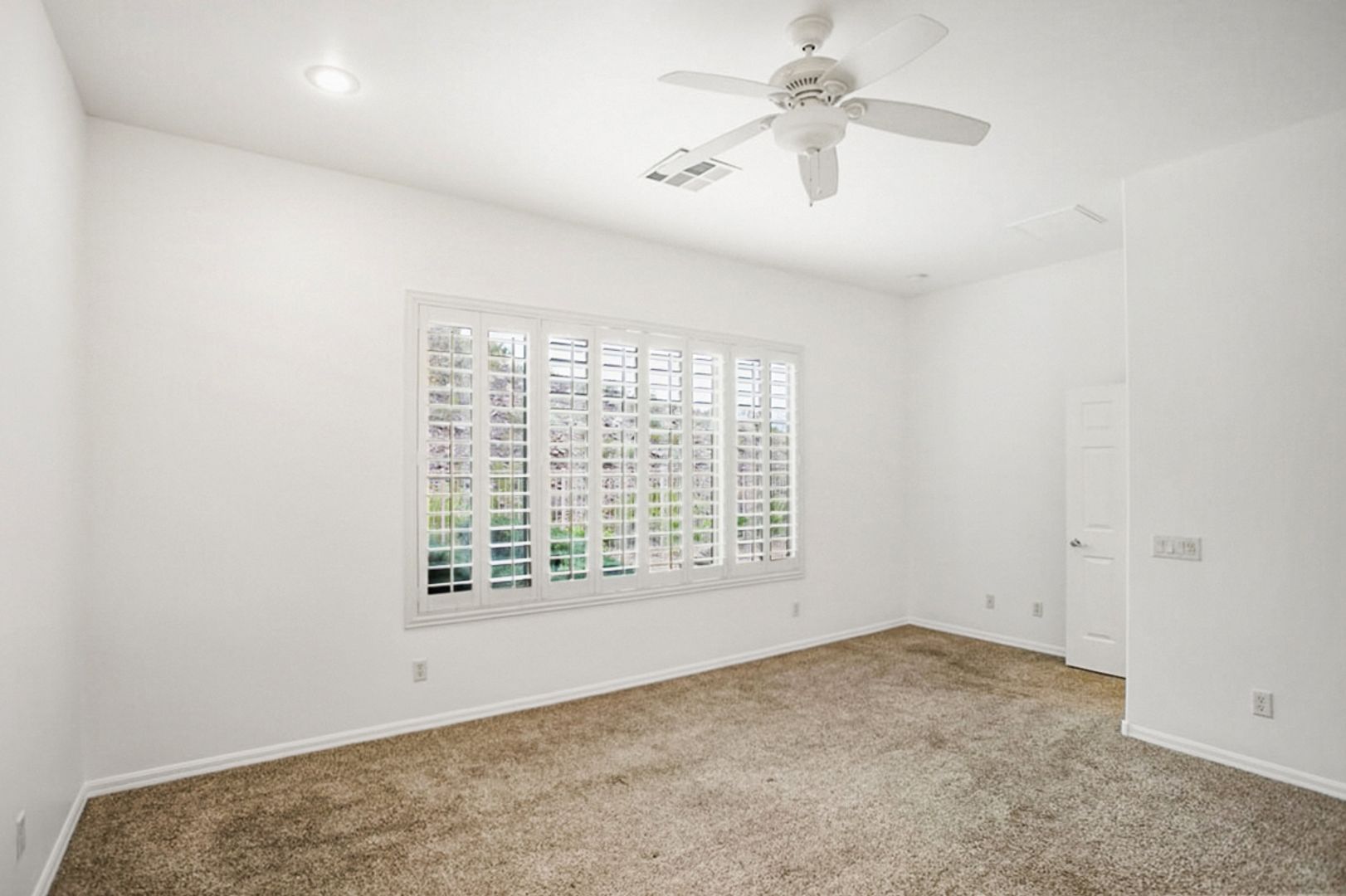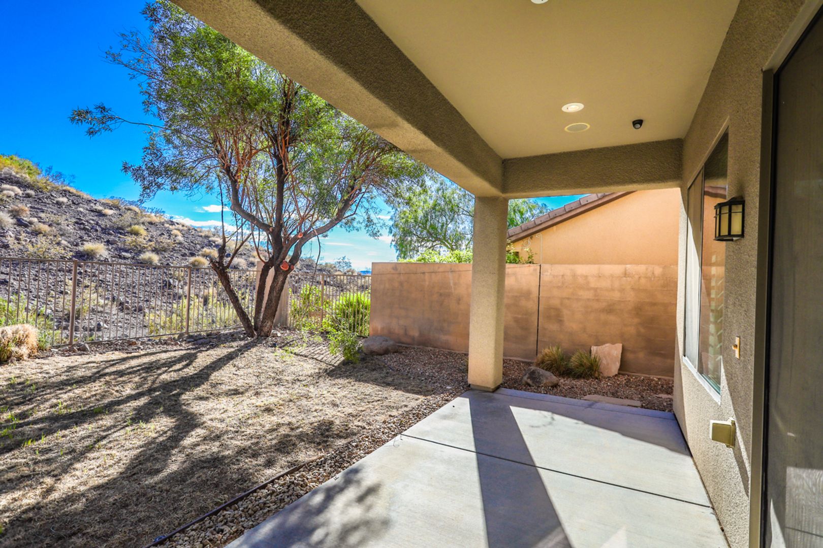 Beautiful single story home in the guard gated golf community of Anthem Country Club w/ 1653sf main house & 249sf casita for total 1902sf; Courtyard entry; Casita features bedroom with ceiling fan and light, walk in closet and full bath; Tile and carpet throughout; Bright, open living area with ceiling fan and recessed lighting; Island kitchen w/ Granite countertops, travertine mosaic backsplash, pantry, stainless steel appliances, refrigerator µowave; Primary suite w/ ceiling fan and recessed lights, deep jetted tub, sep. shower, makeup table & walk in closet; Guest bedroom with ceiling fan and light; Laundry room with washer, dryer and cabinets; Plantation shutters throughout; Oversized covered patio w/ synthetic grass, desert landscaping, and wrought iron fence with view of walking trails; Community features golf, club house, pool, fitness center, park and more! (Total Rent: $3015.00 - $2950 rent + $45 RBP + $20 trash)