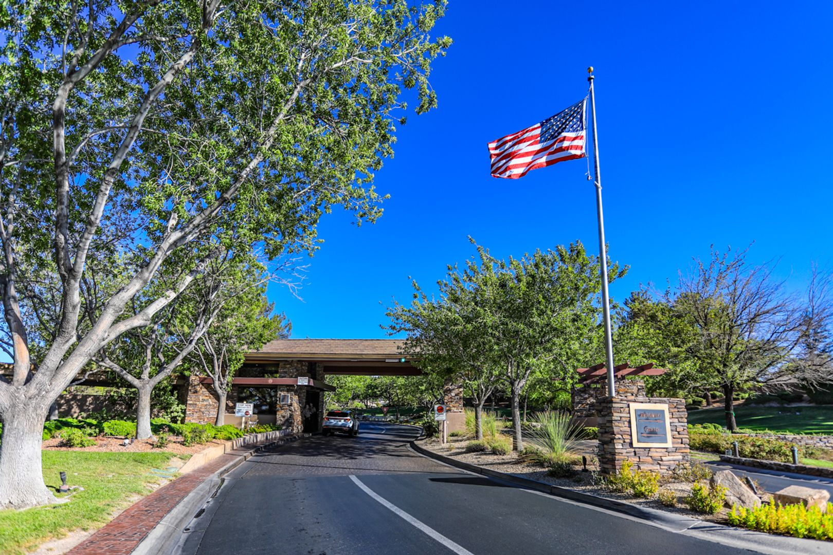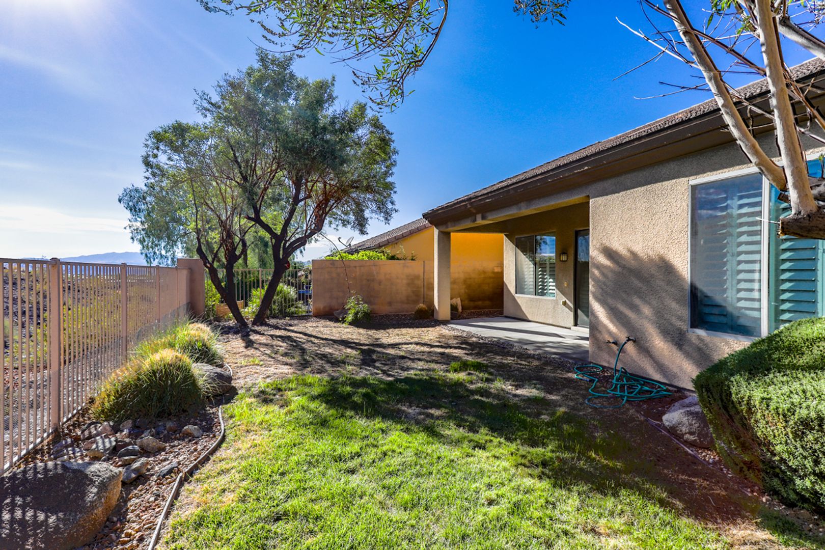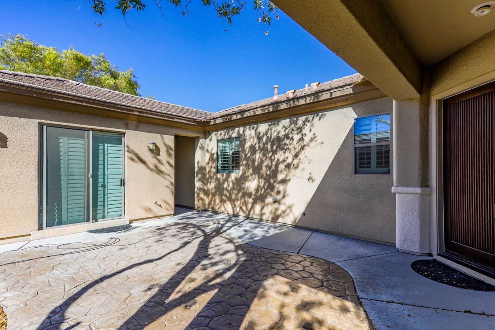 Beautiful single story home in the guard gated golf community of Anthem Country Club w/ 1653sf main house & 249sf casita for total 1902sf; Courtyard entry; Casita features bedroom with ceiling fan and light, walk in closet and full bath; Tile and carpet throughout; Bright, open living area with ceiling fan and recessed lighting; Island kitchen w/ Granite countertops, travertine mosaic backsplash, pantry, stainless steel appliances, refrigerator µowave; Primary suite w/ ceiling fan and recessed lights, deep jetted tub, sep. shower, makeup table & walk in closet; Guest bedroom with ceiling fan and light; Laundry room with washer, dryer and cabinets; Plantation shutters throughout; Oversized covered patio w/ synthetic grass, desert landscaping, and wrought iron fence with view of walking trails; Community features golf, club house, pool, fitness center, park and more! (Total Rent: $3015.00 - $2950 rent + $45 RBP + $20 trash)
