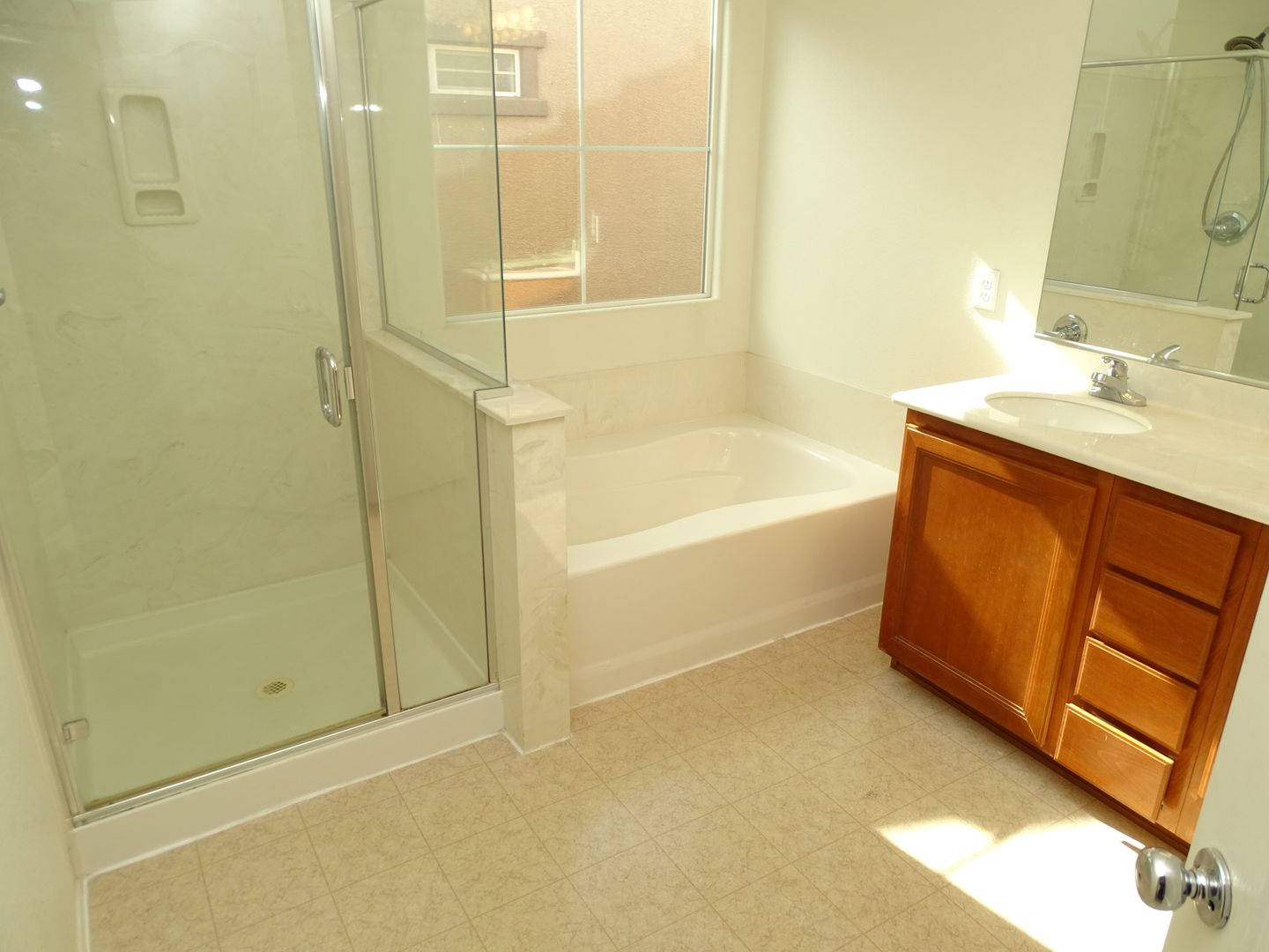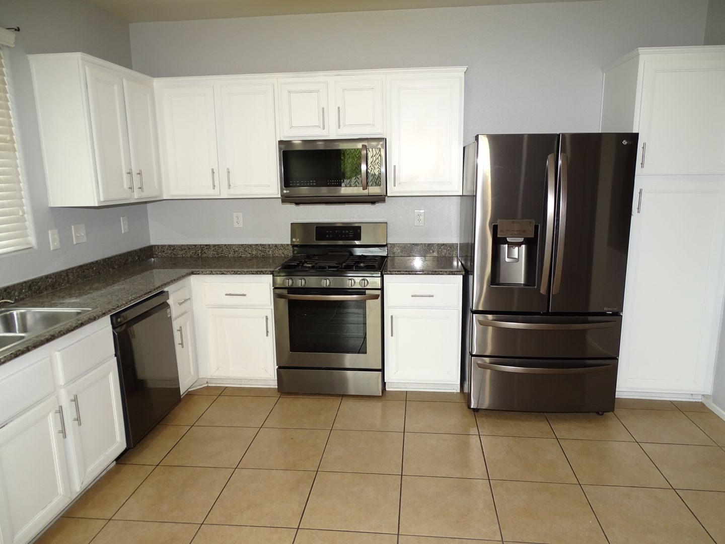 Great, Mountains Edge, 3 bed and loft home; Tile throughout 1st floor; Living room with ceiling fan and light; Kitchen with Granite countertops and stainless appliances including microwave and refrigerator; 2nd floor carpet; Loft; Primary suite with cable outlet, light, walk in closet, double sink and tub/shower combo; Guest bedrooms with light and cable outlet; Hall Linen closet; 2nd floor Laundry room with washer, dryer and shelve; Yard with patio; 2 car garage with opener and entry into home; Convenient to the Southern 215, shopping and dining; Rent includes Sewer, Trash and Resident Benefit Package