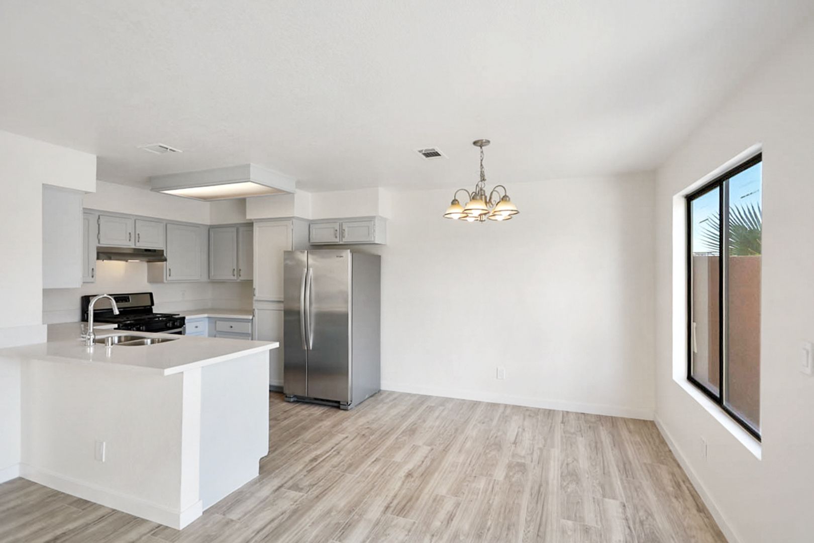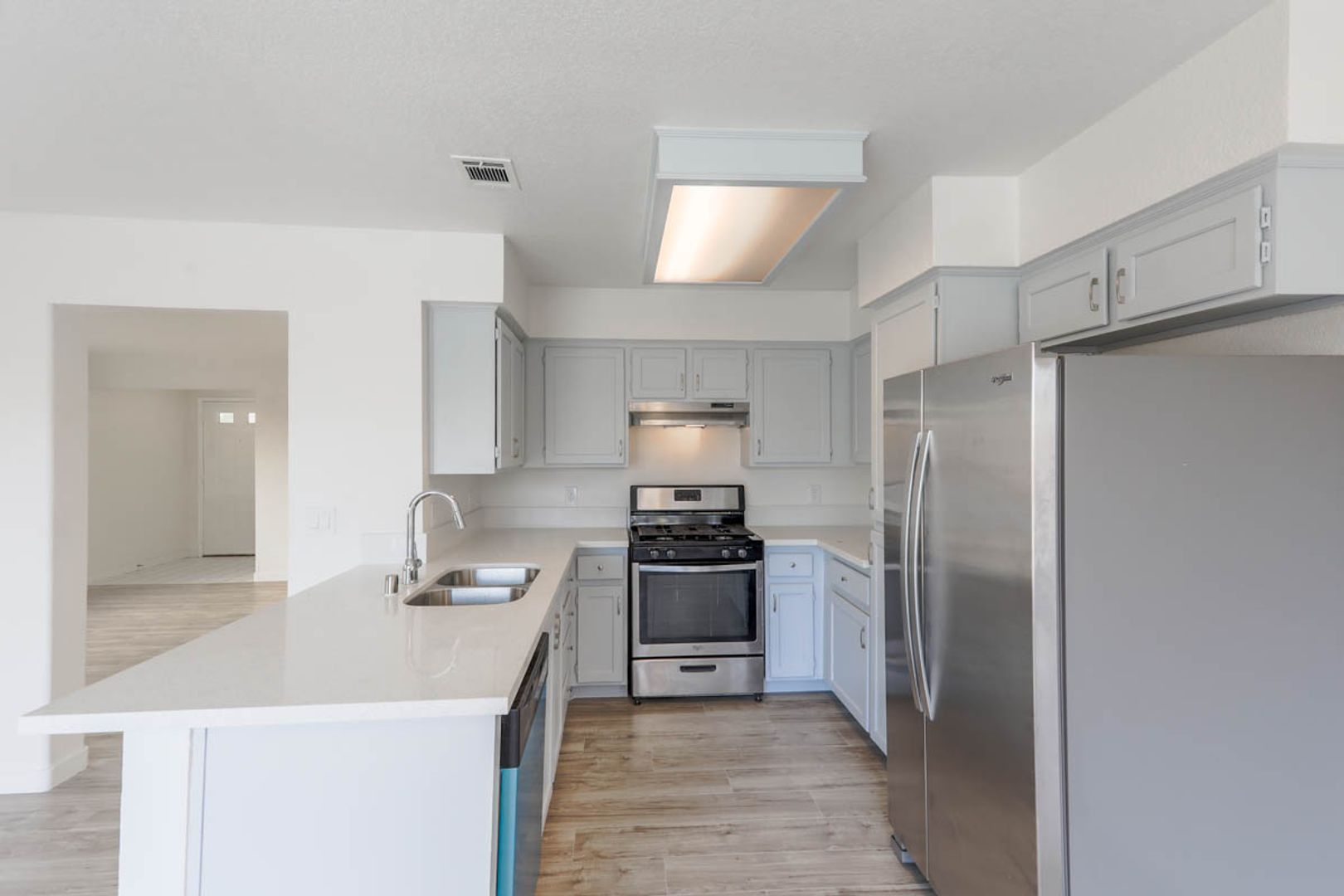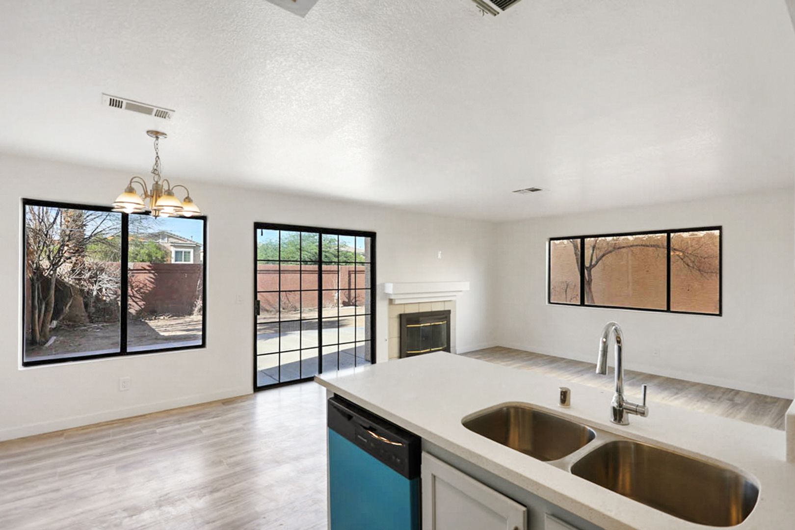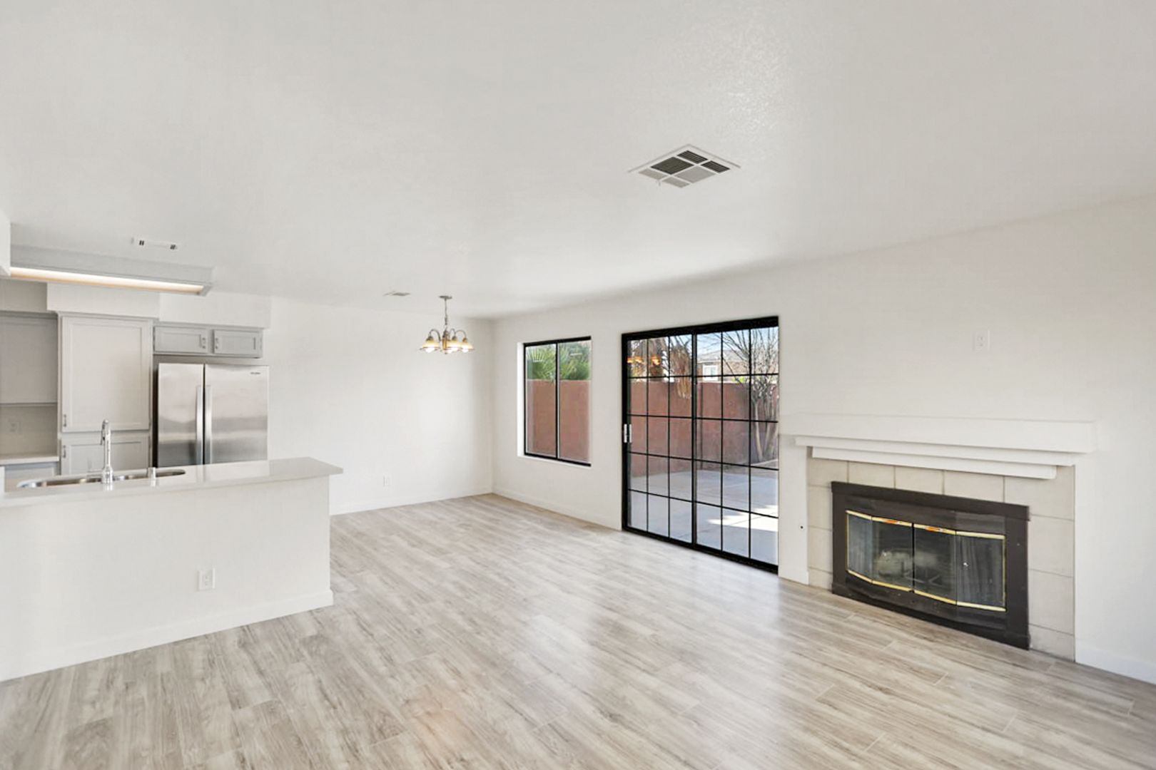 Beautiful home ready for you to move in; Tile entry with Luxury vinyl plank flooring throughout the rest of the home; Bright, open, floor plan with formal living room, separate family room (fireplace does not work and will not be repaired); Dining area; Updated kitchen with Quartz countertops, breakfast bar, updated cabinets and new hardware, pantry and stainless appliances including the refrigerator; Storage area under the stairs; 2nd floor features 2 guest bedrooms with closets; Laundry closet with washer and dryer; Hall cabinet with folding top; Full guest bath with remodeled tub area; Primary suite with ceiling fan, walk in closet and updated walk in shower; 2 car, attached, garage with entry into the house; Spacious yard with oversized patio great for BBQing and entertaining; Community park and playground; Convenient to the 215; shopping, dining and much more!