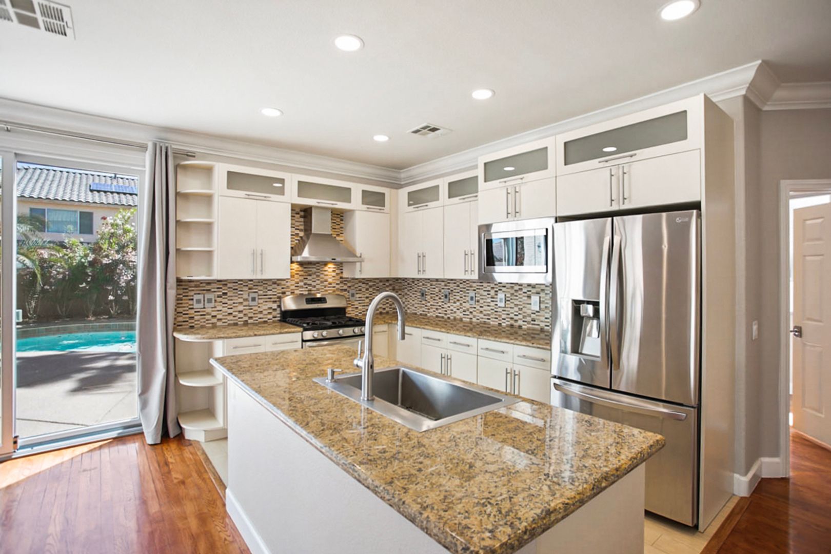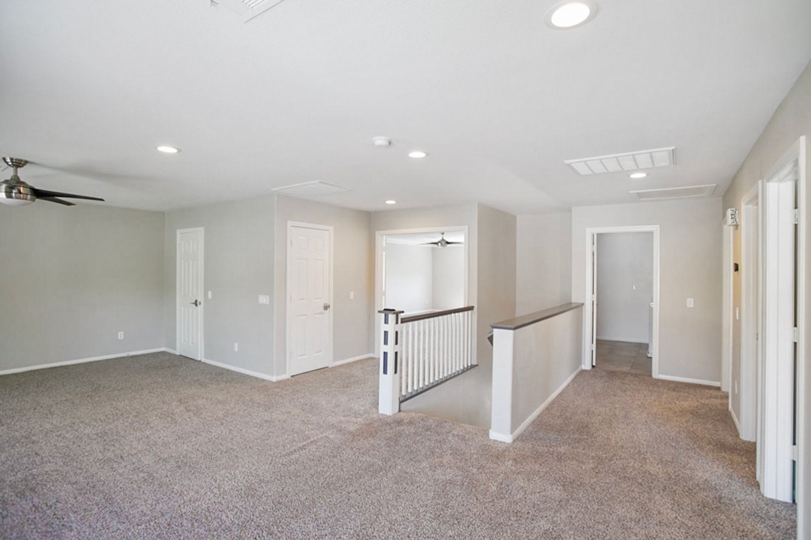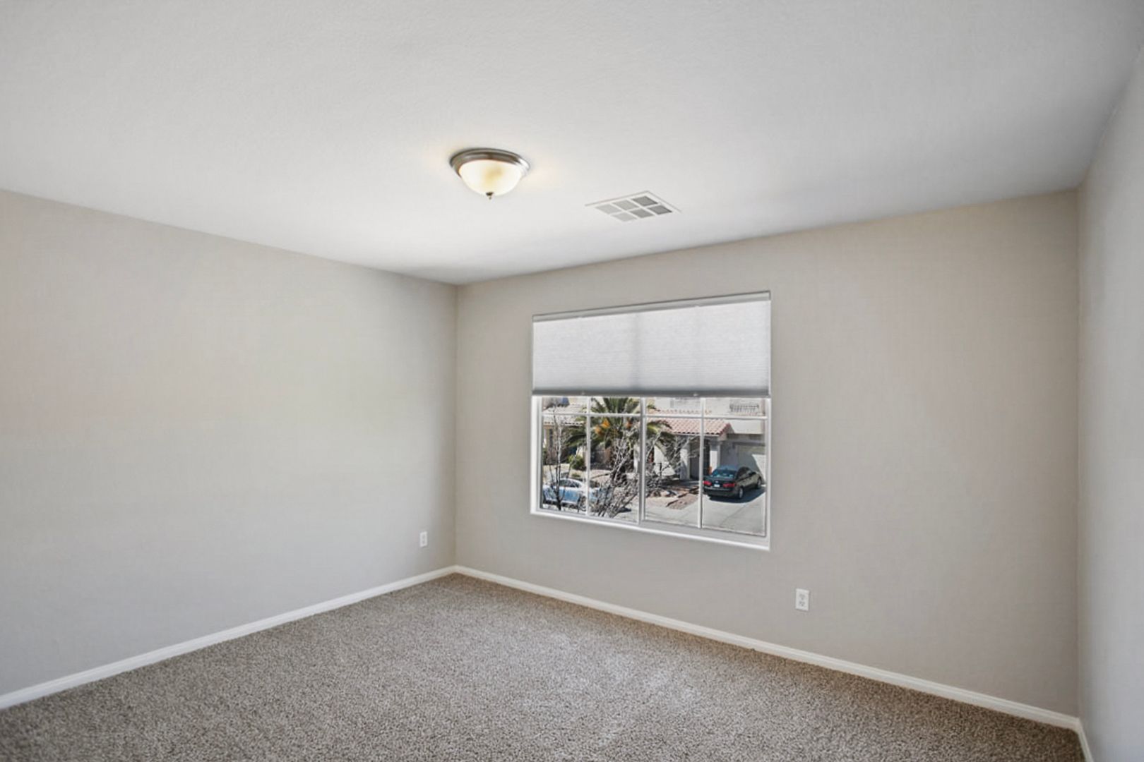 Beautiful, Southwest Vegas, pool home with first floor bed and 3/4 bath; Resort like yard with cool refreshing pool and spa, covered patio and easy care desert landscaping with syn. grass; Inviting oversized, covered, front porch leads you into a bright, open floor plan with polished solid wood floors throughout the 1st floor and carpet throughout the 2nd; Crown molding first floor and 6" baseboards add an elegant touch; Formal living and dining room; Separate family room with ceiling fan, light, TV mount and wired for surround sound; Island kitchen with Granite countertops, nook, pantry, lots of outlets for all your gadgets and stainless appliances including refrigerator and microwave; First floor bed with ceiling light, walk in closet and 3/4 bath; Huge loft, great for lots of games, walk in closet, ceiling fan and light; Guest bedrooms with lights and closets; Primary suite with ceiling fan, light, TV mount, walk in closet, double sink, make up table, deep soaking tub & separate shower; Nest thermostat, camera doorbell, Quantum Fiber, Security cameras in flood lights in front and back yard, keypad entry front door and from the house to the garage, & much more; Convenient to the 215, shopping and dining!