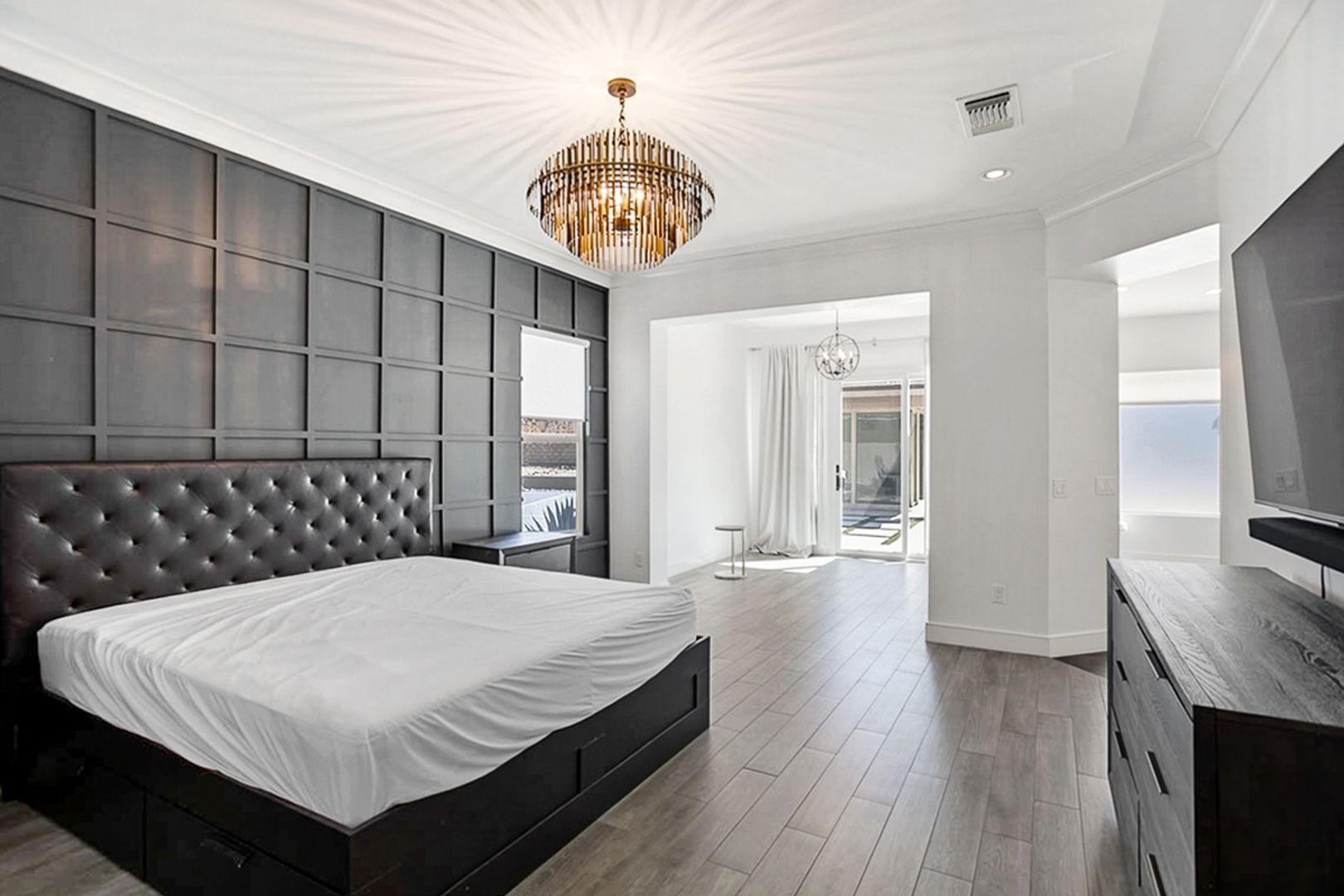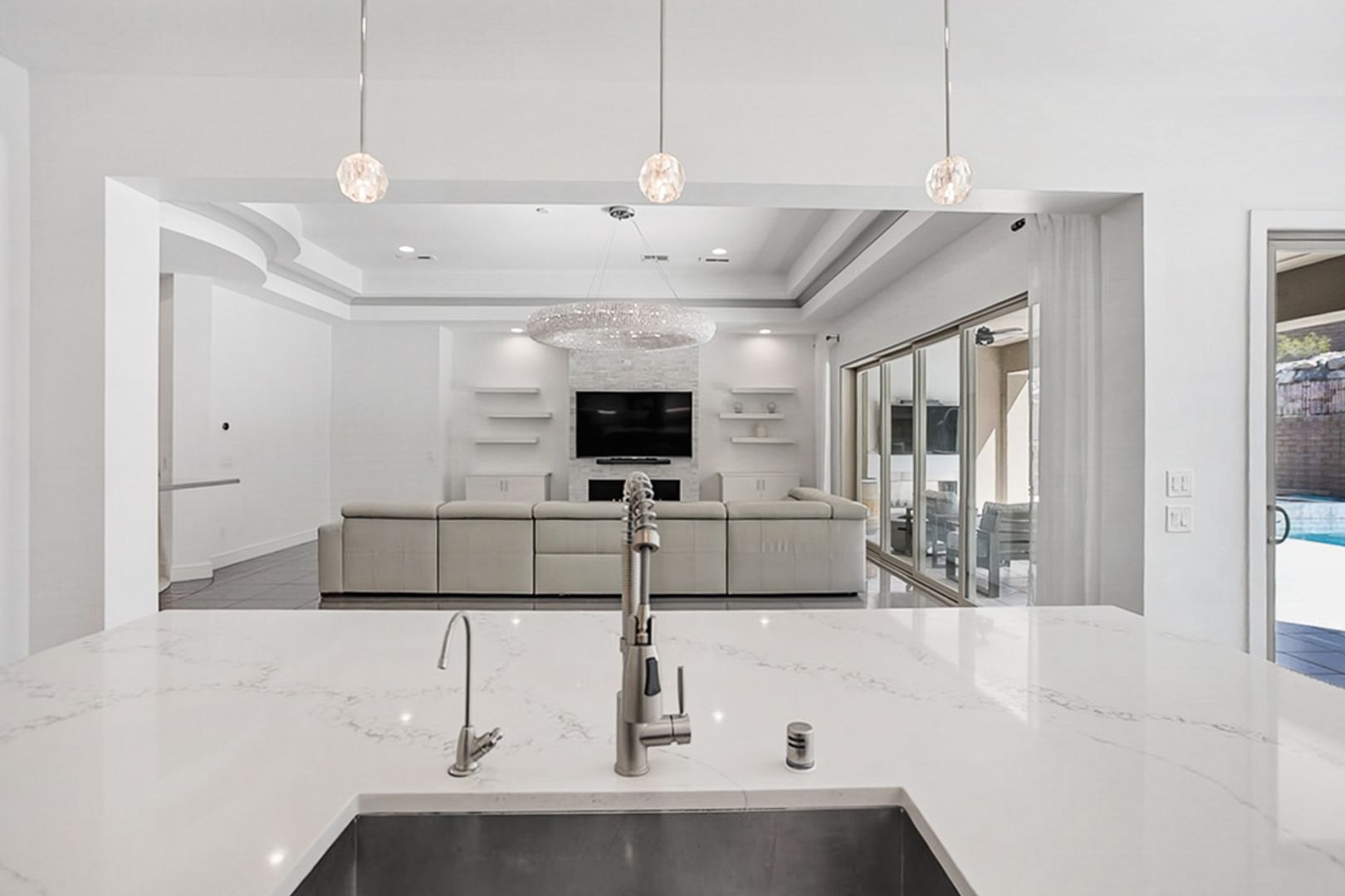 Enjoy resort living in your own oasis w/ this stunning, single story home located in the highly sought after guard gated Reverence, The Pointe community; Enjoy breath taking mountain views from awesome back yard w/ huge, salt water pool including swim up bar, sunken built in BBQ area w/ grill, storage & fridge, Casita w/ 3/4 bath, sink & fridge & 1/2 court basketball area; Modern oversized front doors lead into a bright, open floor plan w/ 9' doors & 12' ceilings; Entertainers kitchen w/ oversized island, breakfast bar, nook, Quartz counters, luxury Kitchen Aid appliances including refrigerator, built in oven, gas range w/ cooktop & additional ovens, µowave; Primary suit offers sitting area, custom walk in closet, double sink, make up table, spacious walk in shower & deep, soaking tub; Guest bedrooms offer ceiling fans, lights & closets; Aquasana Rhino whole house water filter & Krystal Rave water softener; Laundry room w/ washer, dryer, sink & cabinets; must see to appreciate!