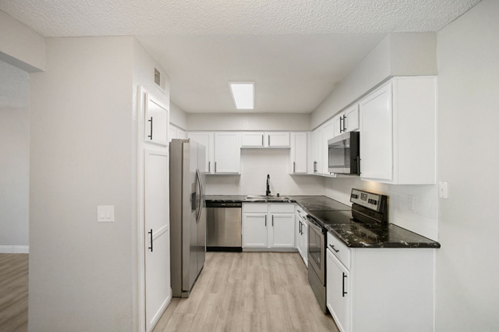 Beautifully remodeled and updated 3 bedroom condo in the Desert Shores Community; Luxury vinyl plank flooring throughout with soft, plush, carpet in the bedrooms; No detail missed from the new door handles, faucets, light fixtures, redone bathrooms and kitchen, to the new, energy efficient windows in the bedrooms; Kitchen with solid surface counters, pantry, and stainless appliances including the microwave and refrigerator; Primary suite with ceiling fan, light, cable outlet, mirrored closet doors and tub/shower combo; Guest bath with walk in shower; Living room with ceiling fan, light and cable outlet; Balcony with laundry closet including the washer and dryer; New, energy efficient, HVAC system and hot water tank; Community features gate, community center, fitness center, pool, spa, and playground; Convenient to the I-95, shopping and dining; Clean and ready for you to move in! Rent Includes sewer, water, trash and Resident Benefit Package