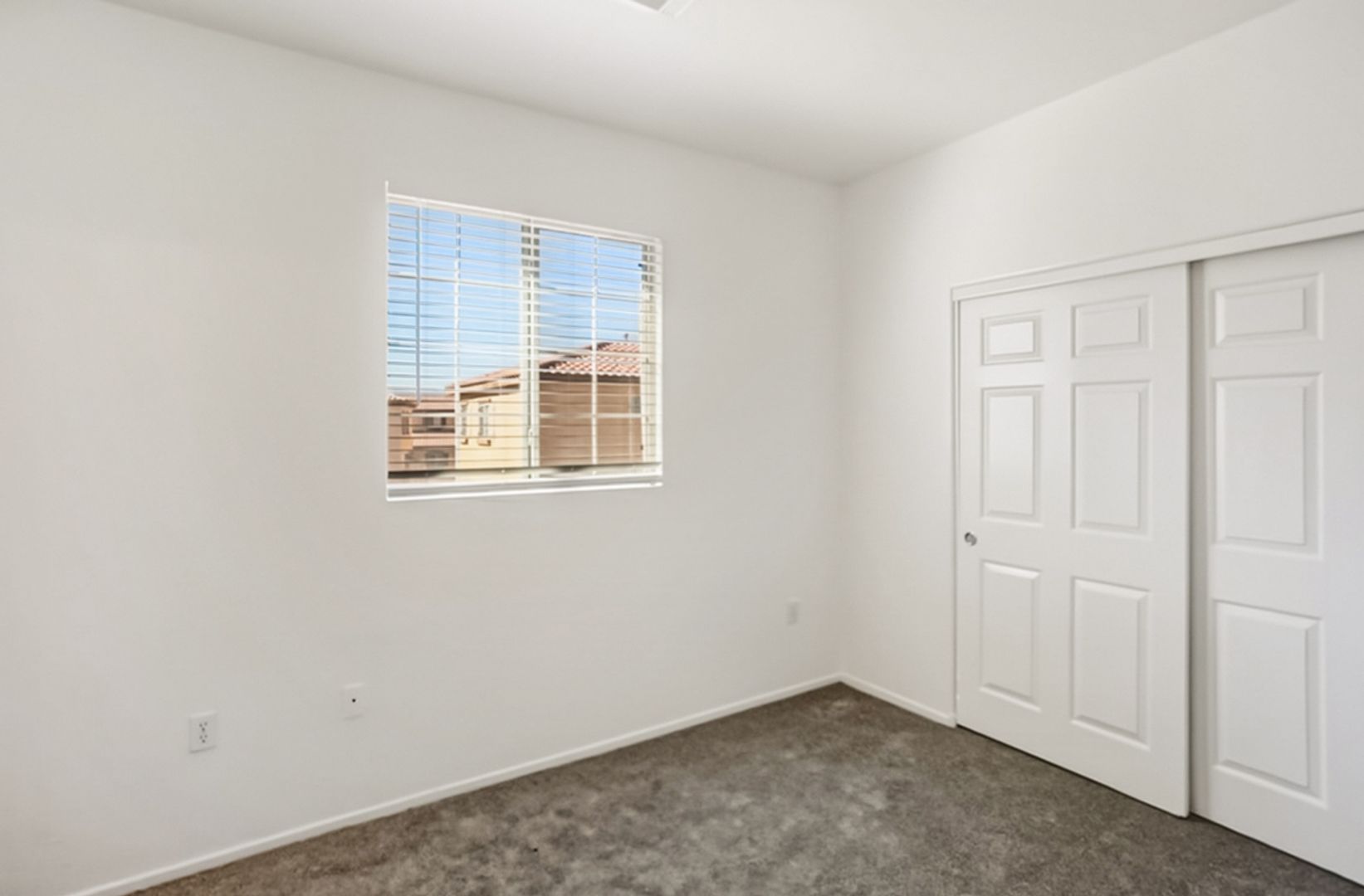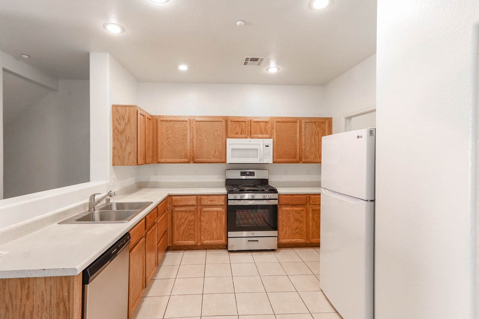 3 story townhome with 4 beds and 4 baths in gated North Las Vegas community with community park, playground and pool; 2 car attached garage with entry to house and auto door; 1st floor primary suite with walk in closet and full bath; 1st floor laundry room with cabinets - NO WASHER OR DRYER; 2nd floor with living room with balcony, dining area and kitchen with walk in pantry, refrigerator and microwave; 3rd floor with 2 bedrooms both with full baths; Convenient to the Northern 215, Nellis AFB, shopping, dining and much more! (Total Rent: $1645 - $1650 Rent + $45 RBP)