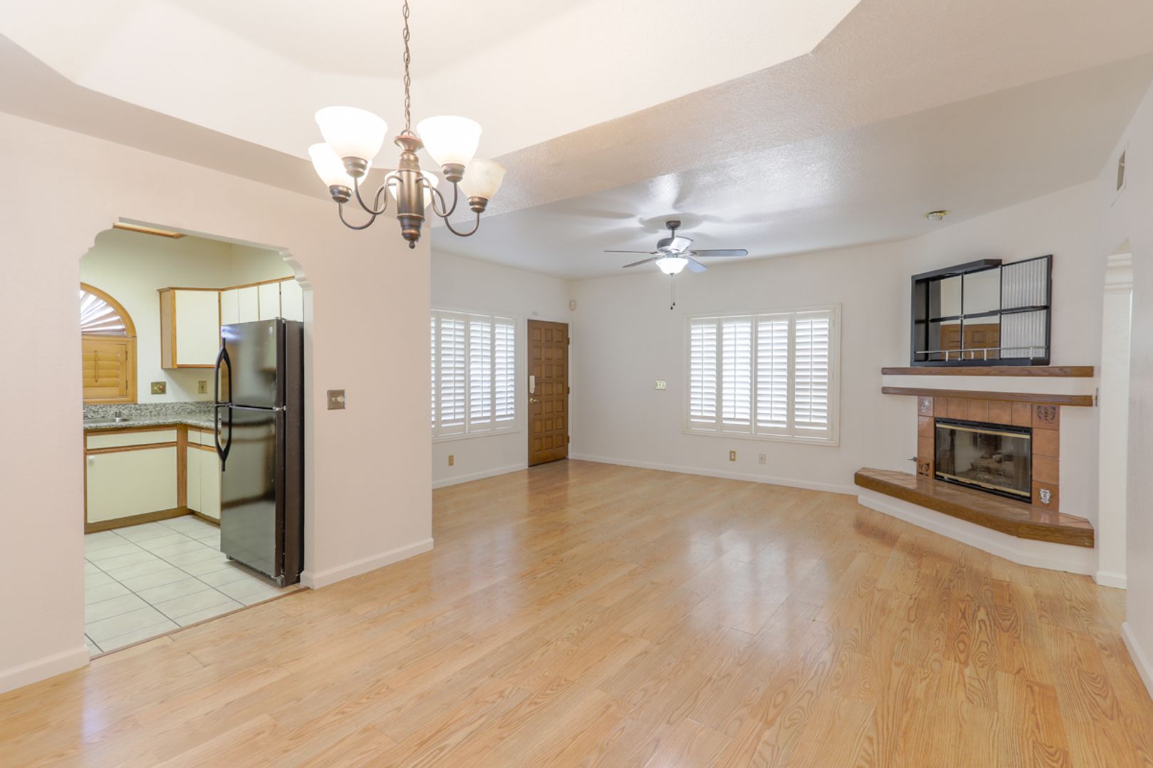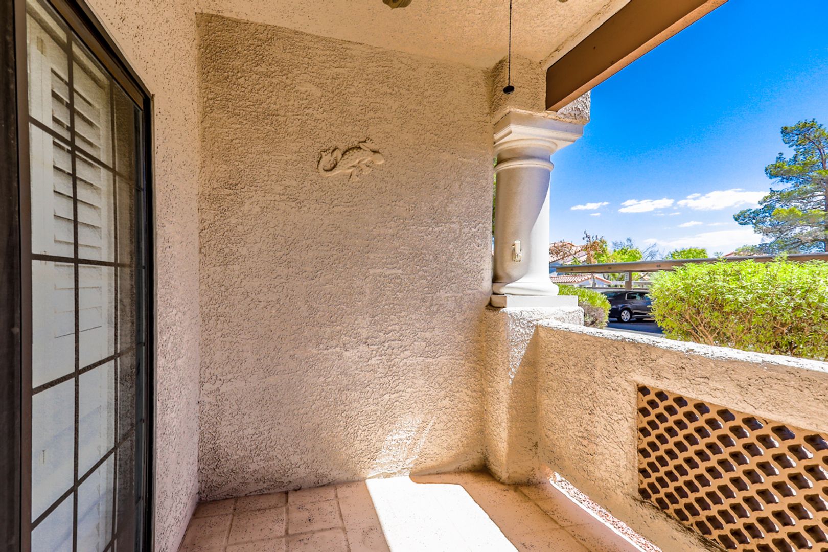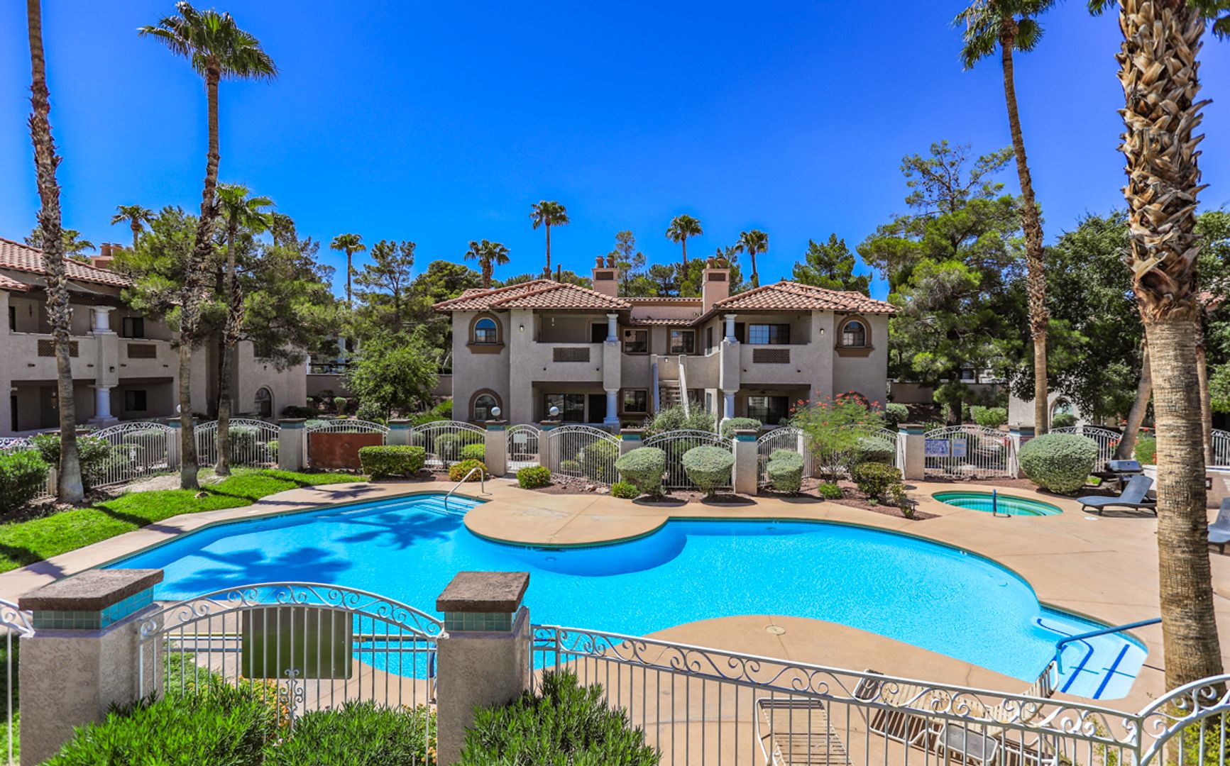 Great 1st floor condo close to CSN, shopping, restaurants & more; Patio entry w/ storage closet; M/M wood flooring throughout; Fireplace in living room & fan; Kitchen w/ Granite counter tops, pantry, built in oven, cooktop stove, microwave, refrigerator; Guest bed w/ fan, walk in closet; Primary w/ walk in closet, fan & patio; Community pool & spa, BBQ area;