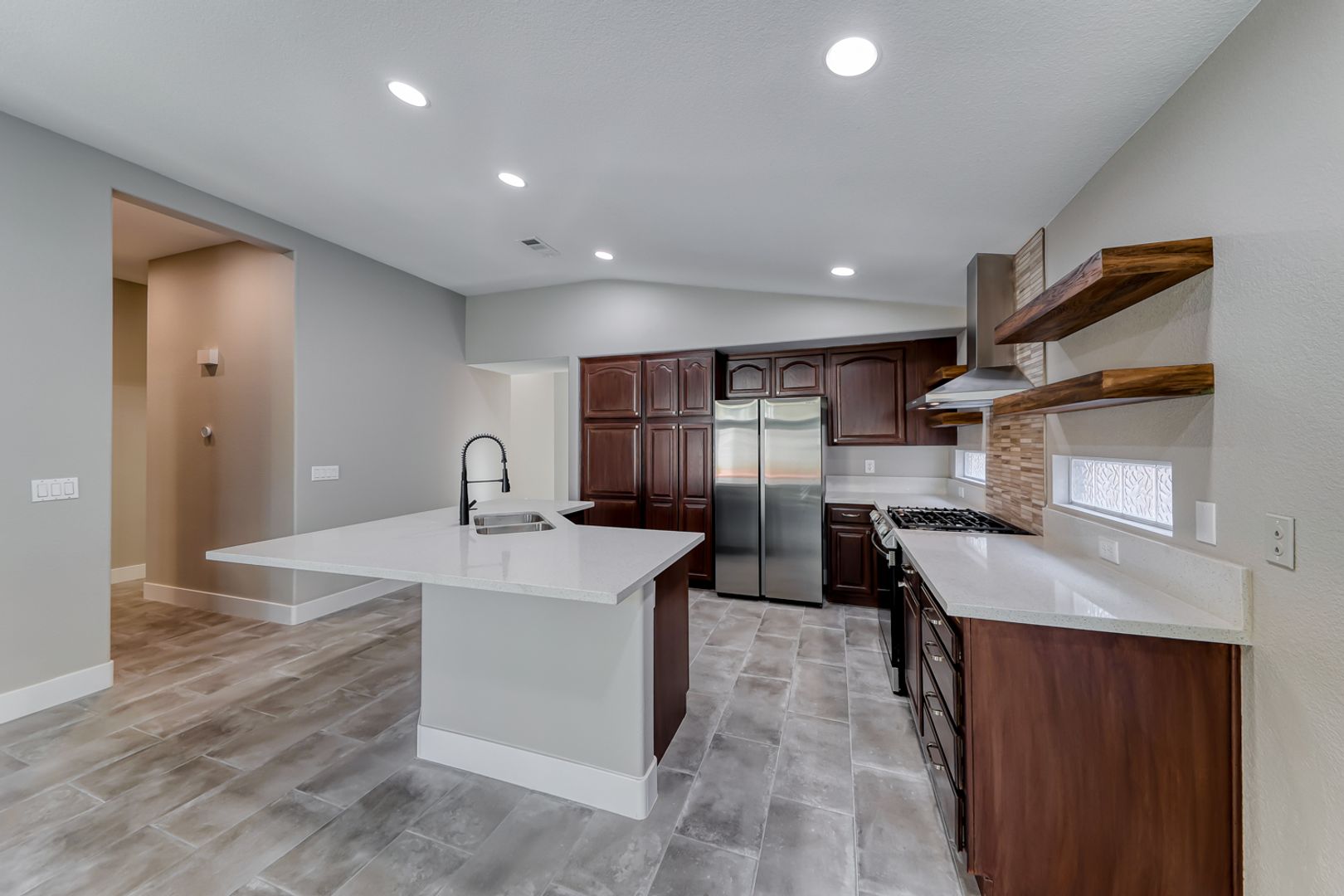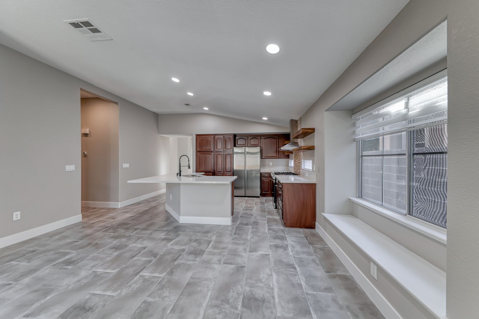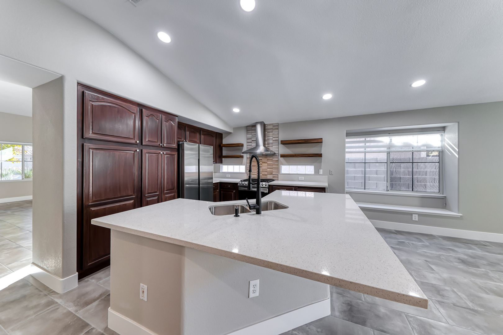 This property has been completely remodeled and updated throughout! It features beautiful tones and upgraded appliances. The spacious kitchen boasts a large island and custom shelves, making it truly unique for a rental. Conveniently located near everything, you will love the area. It is situated in the sought-after Summerlin North, known for its larger trees and shaded streets.